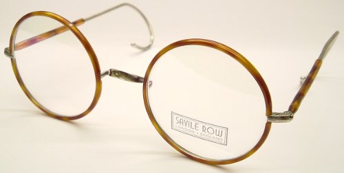 Savile Row Model 'Warwick' Spectacle Frame with 'W' (saddle) Bridge - Silver Color Frame (Rhodium/Platinum) with Light Brown (Blond) acetate rims and curl sides - Hand Made in Great Britain by Savile Row from 14kt Rolled Gold. Classic Round Eye Style ~ 47mm lens size ~ Bridge Size 22mm - Traditionally made in Savile Row's Algha Factory in Smeed Road London - Brand New - Supplied Boxed complete with Savile Row case and microfibre cleaning cloth